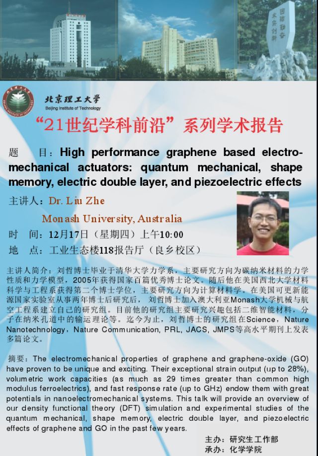 【化學學院】“21世紀學科前沿”劉哲博士學術報告通知