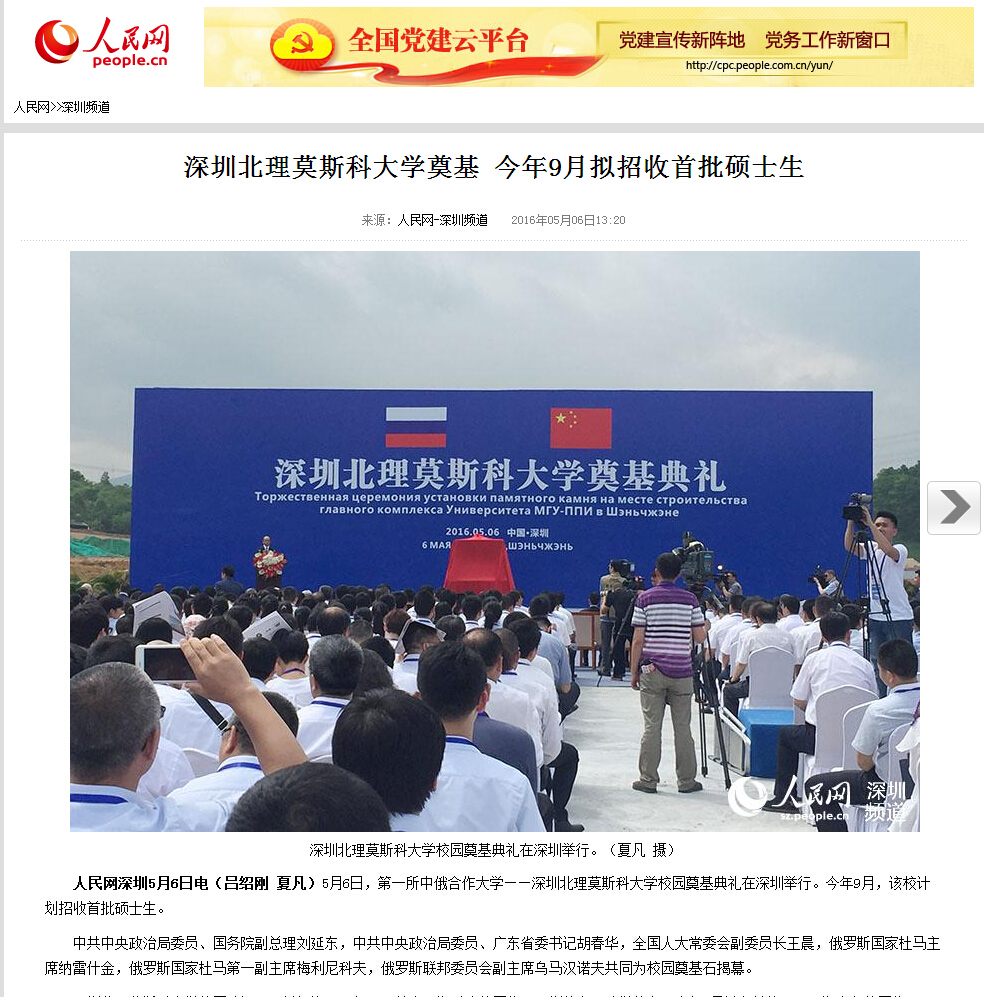 【人民網】深圳北理莫斯科大學奠基 今年9月擬招收首批碩士生