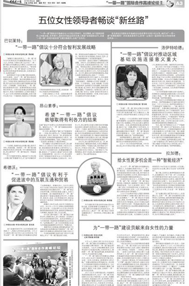 5月14日,國家主席習近平在北京出席“一帶一路”國際合作高峰論壇開幕式,并發表題為《攜手推進“一帶一路”建設》的主旨演講。習近平主席的精彩演講,在各界女性中引發強烈反響,大家紛紛表示,要搶抓“一帶一路”建設新機遇,體現新的更大擔當,作出新的更大貢獻。