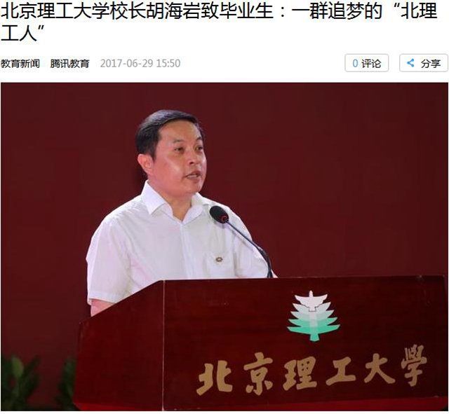 【騰訊教育】北京理工大學校長胡海巖致畢業生:一群追夢的“北理工人”