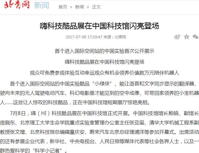 【北青網】北理工科研成果亮相嗨科技酷品展