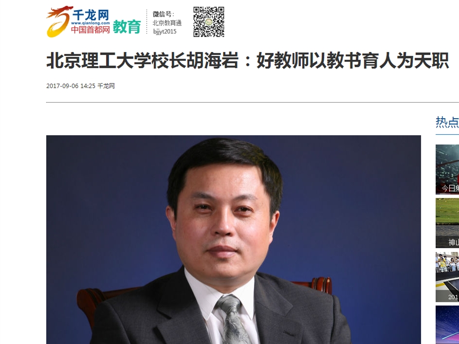 【千龍網】北京理工大學校長胡海巖:好教師以教書育人為天職
