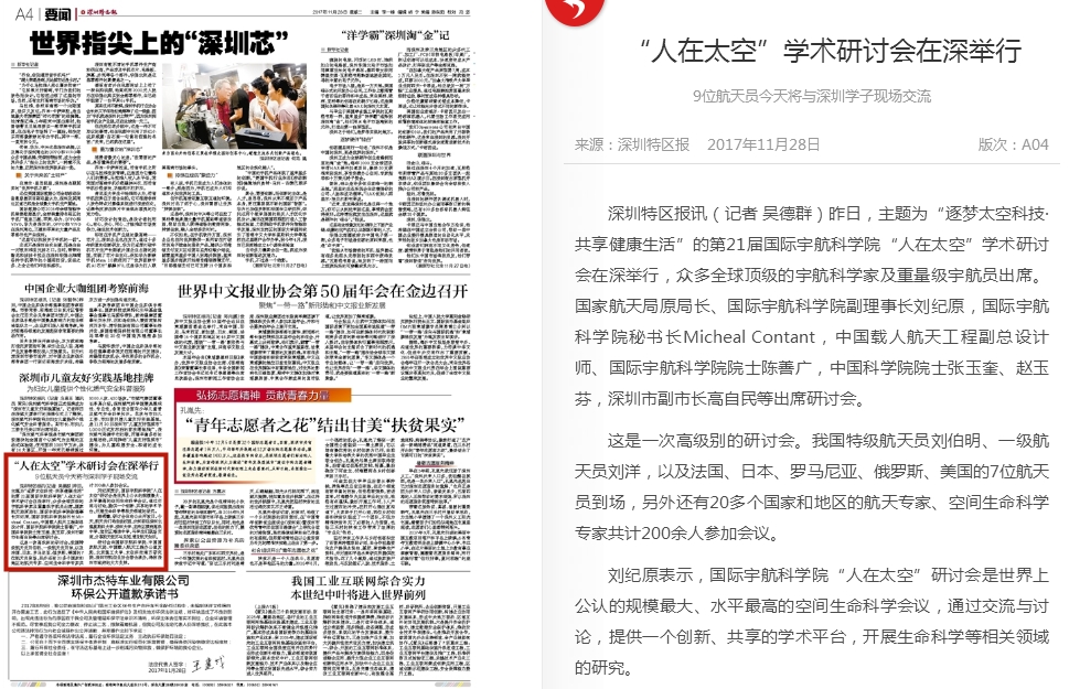 【深圳特區(qū)報】“人在太空”學(xué)術(shù)研討會在深舉行