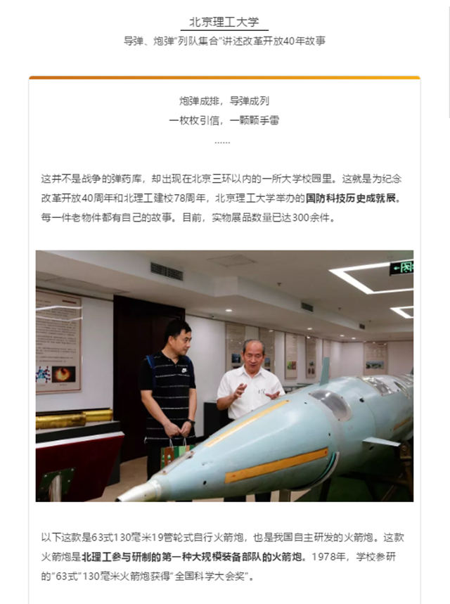【北青報-教育圓桌】北京理工大學(xué):導(dǎo)彈、炮彈“列隊集合”講述改革開放40年故事