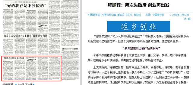 【中國青年報】北理工校友程鵬程:兩次失敗后 創業再出發