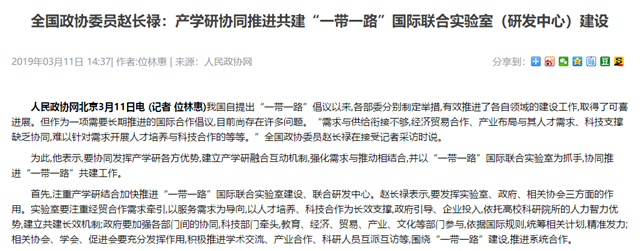 【兩會?人民政協網】趙長祿委員:產學研協同推進共建“一帶一路”國際聯合實驗室(研發中心)建設