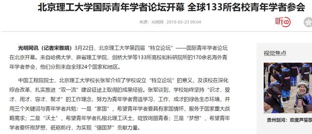 【光明網(wǎng)】北京理工大學(xué)國(guó)際青年學(xué)者論壇開幕 全球133所名校青年學(xué)者參會(huì)