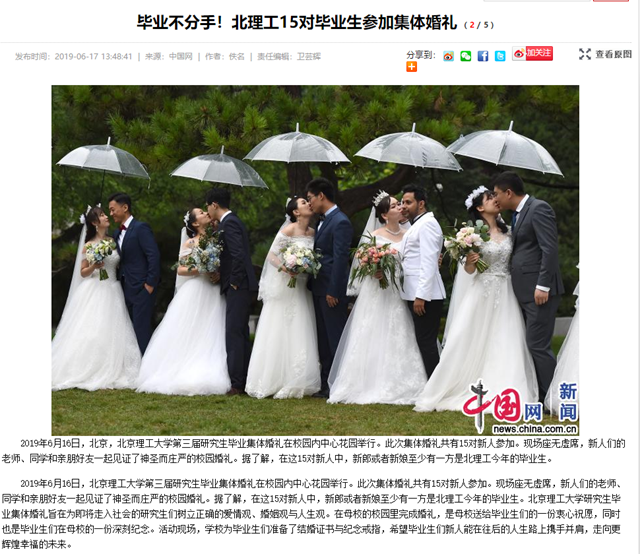 【中國網】畢業不分手!北理工15對畢業生參加集體婚禮