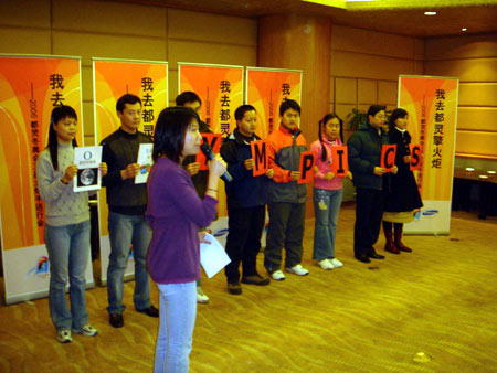 和高銘華對奧運的狂熱不同,來自成都的游浴是一個特別的女孩,她有自己的奧運夢想。而且她的經歷頗具傳奇色彩。20歲時,創立業界著名的Hi-Fi English英文節目,隨后和英國傳媒巨頭BBC合作,舉行BBC中國校園行活動,打造本土最高品牌的英文歌友節目;21歲時,已經采訪過世界一流的傳媒人士、漫畫家、明星;現在,22歲的游浴成為寶潔的一名優秀經理。