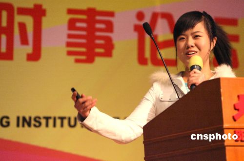 十二月二十三日晚,“北京理工大學(xué)第四屆學(xué)生時事論壇”決賽在該校舉行。本屆論壇以“學(xué)習(xí)十七大精神”為主線,圍繞“和諧社會”、“科學(xué)發(fā)展”、“生態(tài)文明”、“朝伊核問題”、“好運北京奧運測試賽”等主題,選手們各抒己見,表述自己的觀點。本屆論壇的十二名一等獎獲得者將被聘請為“北京理工大學(xué)學(xué)生形勢政策宣講團”講師,由學(xué)生工作部統(tǒng)一培訓(xùn),在下學(xué)期將走上講臺為廣大學(xué)生講課。這樣既能緩解形勢政策課師資不足的現(xiàn)狀,也能對“兩課”教學(xué)進行必要的有益的補充。