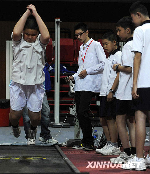 當(dāng)日,北京市中小學(xué)生國家學(xué)生體質(zhì)健康標(biāo)準(zhǔn)測試在北京理工大學(xué)舉行。來自北京18個區(qū)縣的近2000名學(xué)生隨機抽簽參加了臺階試驗、立定跳遠(yuǎn)、肺活量、身高體重等項測試。新華社發(fā)