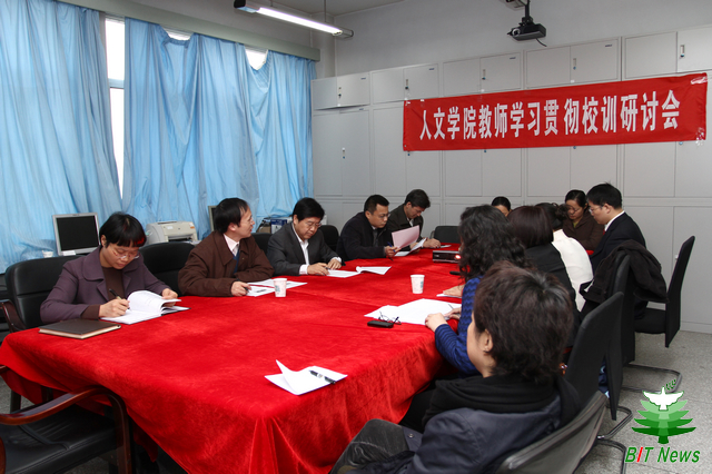 李健院長在討論中談到,大學校訓作為大學辦學理念、辦學精神和辦學風格的高度概括,充分反映大學的辦學傳統和特色。學校的校訓建設,對于傳承學校的人文精神,展現學校的教育風格,規范學生的道德行為,指導人才培養的價值取向等方面都有至關重要的作用。我校的校訓是校黨委在廣泛征求全校師生員工和校友的意見基礎上,于2010年8月26日最終確定,在2010年9月4日召開的2010級新生開學典禮上由胡海巖校長代表學校正式宣布。“德以明理 學以精工” 這一校訓既是建校70年來我校幾代師生員工崇德尚行、學術報國的真實寫照,又是新的歷史時期全校師生員工共同努力的方向。人文學院理應在學校的校訓建設發揮重要作用。