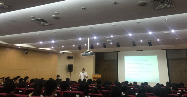 師生們與Torsten博士互動交流,共同探討著“如何寫好你的第一篇論文”的話題。在報告現場,我們通過微信的簡單問卷調查初步統計了師生情況:大約62%博士生、12%碩士、18%副教授、本科生4%,充分體現了我校師生對科學學術論文寫作的重視。