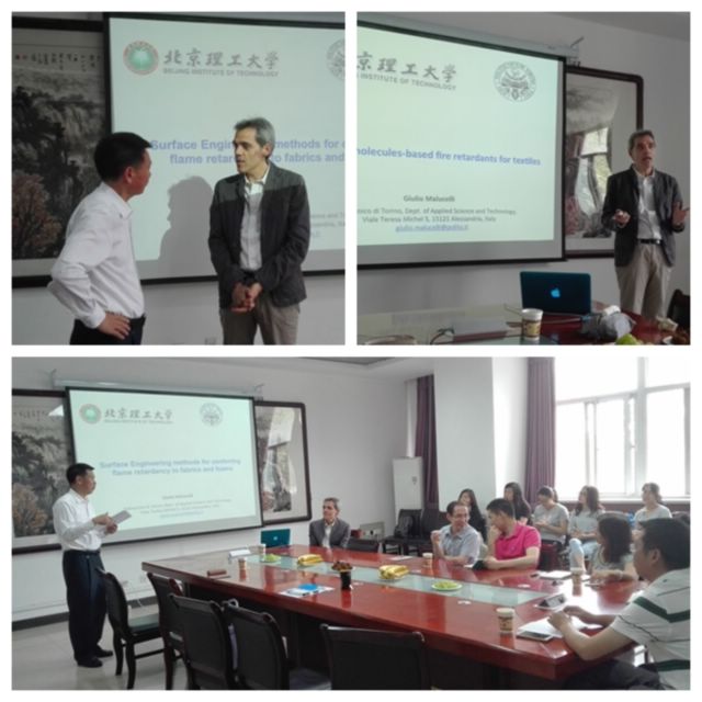 2016年夏,都靈理工大學Giulio Malucelli教授應北京理工大學材料學院、國家阻燃材料工程技術研究中心、阻燃科學與技術國際聯合實驗室邀請,來我校進行學術交流。本項目為北京理工大學外國專家重點引智項目,工程中心主任、聯合實驗室主任楊榮杰教授作為項目負責人,組織和參與了項目的整個計劃和實施過程。
