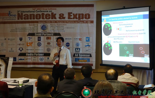 2013年10月8日至12日、12月1日至6日,北理工機電學院張振海副教授應邀出席在中國上海、美國拉斯維加斯舉行的 “第四屆微納米技術國際會議”和“第三屆納米科技國際學術會議”,受邀國際會議Keynote主旨報告并擔任技術分會主席。本次國際會議的舉行為研究者和工程師們提供了展示最新研究成果和相互交流的平臺。