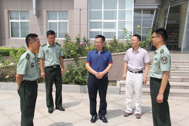8月4日,北京理工大學黨委武裝部領導一行前往防化學院,看望了我校參加暑期基地化集訓的2015級國防生。校長助理郝志強、武裝部部長郭彥懿、副部長徐貴寶等共同前往慰問。