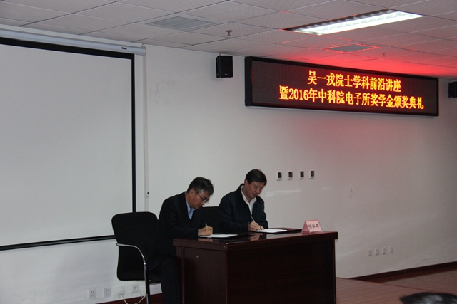 隨后,中科院電子所所長吳一戎院士與陳杰進行獎學金續簽儀式。