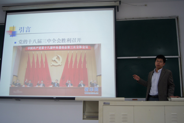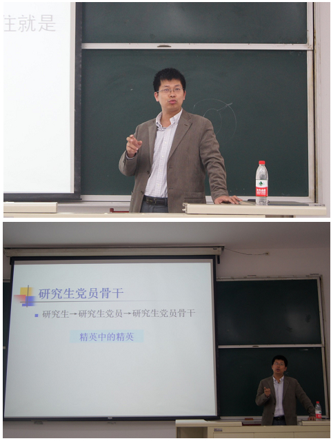 首先,徐強以黨的十八屆三中全會召開為背景內容,從“發展方向、政策路線、黨建重點”三個方面分析了總書記系列講話的內涵,緊隨時事,引入主題,激發了黨員骨干們的濃厚興趣。隨后,通過對新時代特征的分析,使大家對近年來中國面臨的機遇與挑戰有了清晰的認識。徐強指出,“雖然和平、發展、合作已經成為了不可阻擋的時代潮流,但仍然要注意到身邊的各種不安定因素”。接下來,他對研究生群體目前面臨的學業困惑、經濟壓力、就業壓力、婚戀問題等進行了剖析,并提供了有意的建議。最后,徐強對廣大研究生骨干提出了具體要求,主動投身時代熔爐,尋求成長,在組織中培養能力,在學習中講究方法,在生活中堅定信念,在工作中追求完美,時刻為做一名優秀的研究生黨員骨干而努力。