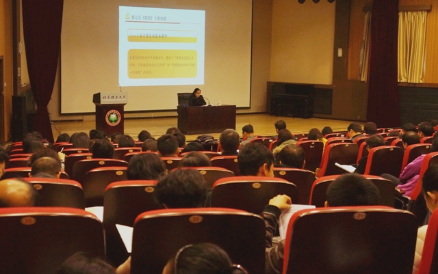 北京市委教育工委組織處處長李麗輝作了“北京高校基層黨建工作創新與實踐”專題輔導報告,介紹了北京高校黨建工作的基本情況,講解了基層黨建工作創新的主要做法,提出了下一步工作的重點。她講到,北京高校黨建工作具有良好的基礎,受到中央的高度重視。黨的基層組織是黨全部工作和戰斗力的基礎,在當今高校外部、內部環境發生深刻變化的情況下,要從創新工作理念、堅持理論武裝、健全工作機制、加強黨內民主建設、推進工作創新和建立長效機制等六個方面進一步加強高校基層黨建工作。要按照為全面深化高等教育改革提供堅強保障的總要求,把加強思想理論建設、黨的建設制度改革、建設服務型基層黨組織、增強黨員隊伍先進性純潔性等作為高校黨建工作的重要任務。