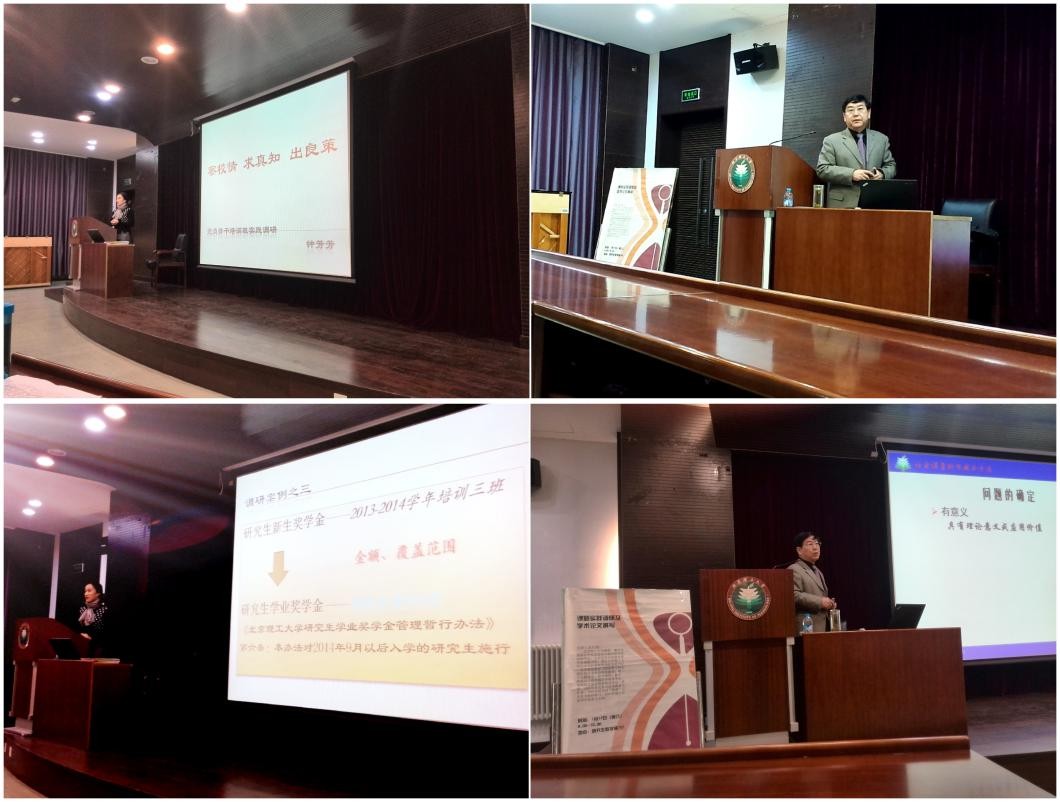 其后,黨員骨干培訓班進行了《課題實踐調研以及學術論文撰寫》為主題的專題講座。本次講座旨在為即將展開的實踐調研項目提供理論基礎和指導方法,從社會調查的含義入手,為黨員骨干講解了社會調查的一般步驟和方法:首先根據研究目的確定研究課題和假設;其次選取合適的方法收集資料,重點介紹了文獻調查法、實地觀察法、訪談法以及問卷調查法,并對各個方法做了比較分析;最后對資料的整理分析以及調查報告撰寫要領進行了系統介紹。整場講座內容豐富,學員收獲頗豐。