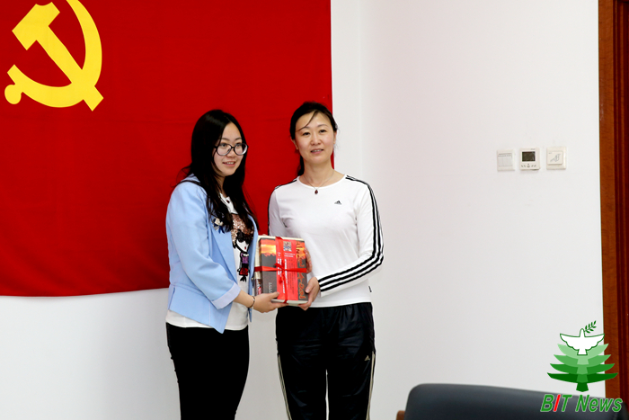 最后,包麗穎老師代表宣傳部黨支部向人文學(xué)院2012級學(xué)生黨支部贈送了書籍。