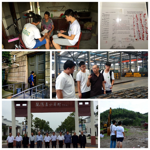 暑假伊始,劉勁濤團隊就趕往安徽鳳陽小崗村,重溫小崗村率先進行大包干的壯舉,回顧第一書記沈浩的優秀事跡,并對這一名村的經濟發展現狀進行調研;8月8日,泮冠如實踐團奔赴浙江松陽、仙居等地,進行了為期九天的社會實踐,對自然村落保護與發展問題進行了專題調研;張洋帆同學則帶領他的實踐團,走進了金品機械制造有限公司等企業,探索企業經營和環境污染的平衡關系;李小松的團隊則著眼于創新創業,在中關村進行了一系列相關調研;朱雪東團隊赴牡丹江“八女投江”博物館,陳潤峰團隊赴八路軍駐新疆辦事處紀念館等進行抗戰勝利70周年宣傳調研,緬懷先烈。