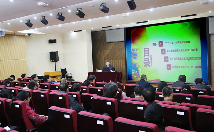 此次黨課內容緊密結合學校實際工作,政策講解深入淺出,案例分析現實生動,為全體與會人員進一步明確了踐行“三嚴三實”扎實開展黨風廉政建設的工作要求,為紀檢監察工作的開展提供了有力保障。