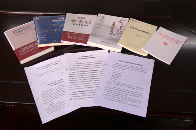 學院黨委結合“三嚴三實”教育和十八屆五中全會精神,為每位理論學習中心組成員準備了豐富的學習材料——《縣委書記的領導能力》、《好干部是如何煉成的》、《讀懂中國制造2025》、《大數據領導干部讀本》、《黨員必須牢記的100條黨規黨紀——<中國共產黨紀律處分條例>解讀》,要求大家加強日常理論學習,并將學習成果運用到本職工作中,共同推動學院發展建設。