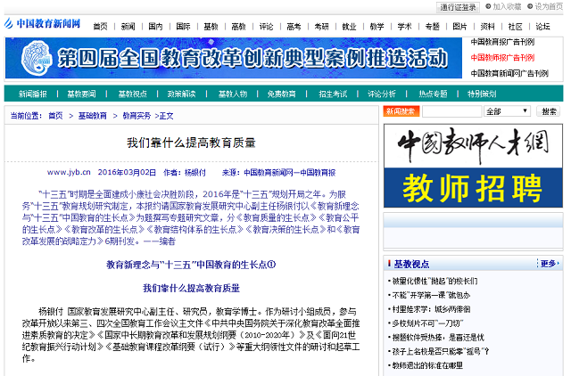 發布日期:2016-03-07 供稿:中國教育報 編輯:新聞中心 辛嘉洋 閱讀次數: