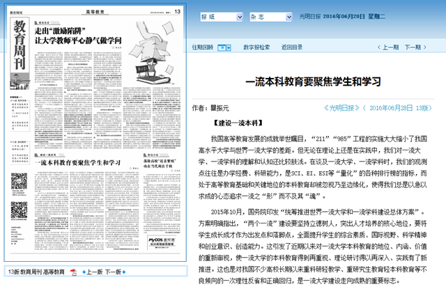 2015年10月,國務院印發“統籌推進世界一流大學和一流學科建設總體方案”。方案明確指出,“兩個一流”建設要堅持立德樹人,突出人才培養的核心地位,要將學生成長成才作為出發點和落腳點,全面提升學生的綜合素質、國際視野、科學精神和創業意識、創造能力。這引發了近期以來對一流大學本科教育的地位、內涵、價值的重新審視,使一流大學的本科教育得到再重視、理論研討得以再深入、實踐有了新推進。這也是對我國不少高校長期以來重科研輕教學、重研究生教育輕本科教育等不良傾向的一次理性反省和正確回歸,是一流大學建設走向成熟的重要標志。