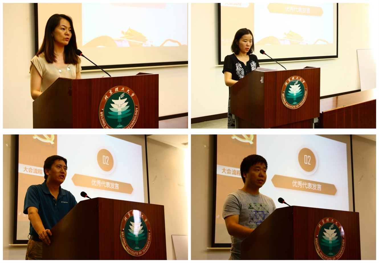 在雄壯的國歌聲中,表彰大會拉開序幕。方蕾首先代表宇航學院黨委,向全院黨員致以節日的問候,向受表彰的先進集體和優秀個人表示祝賀,并向新加入黨組織的黨員們表示熱烈歡迎。隨后,機關黨員徐瑩瑩、教工黨員郭百巍、學生黨員張宏業分別代表優秀黨員講話,三名黨員代表以不同的視角與同志們分享了自己如何在平凡的崗位上發揮黨員先進性。徐瑩瑩老師講述了在學生工作中加強黨性修養的重要意義;郭百巍老師介紹了共產黨的信念在教學科研中發揮的重大影響;張宏業同學則結合實際分享了支部生活的組織經驗,代表們樸實而真摯的發言獲得了現場的陣陣掌聲。