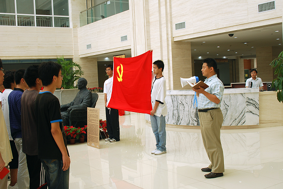 王悅音書記在講話中首先祝賀了全體新發(fā)展黨員,指出入黨宣誓是每名黨員必經(jīng)的一個環(huán)節(jié)和儀式,學(xué)院此次在徐特立先生銅像前組織宣誓活動就是要讓大家銘記黨員身份,以此為起點不斷提高黨性修養(yǎng),并希望全體新黨員在學(xué)習(xí)、生活和工作的方方面面都要做到高標準、嚴要求,特別是在即將到來的07級學(xué)生搬遷過程中積極主動,發(fā)揮先鋒模范和帶頭作用,共同做好搬遷相關(guān)各項工作。