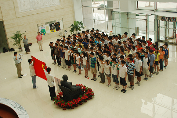 最后,宣誓活動在雄壯的國際歌歌聲中結(jié)束。
