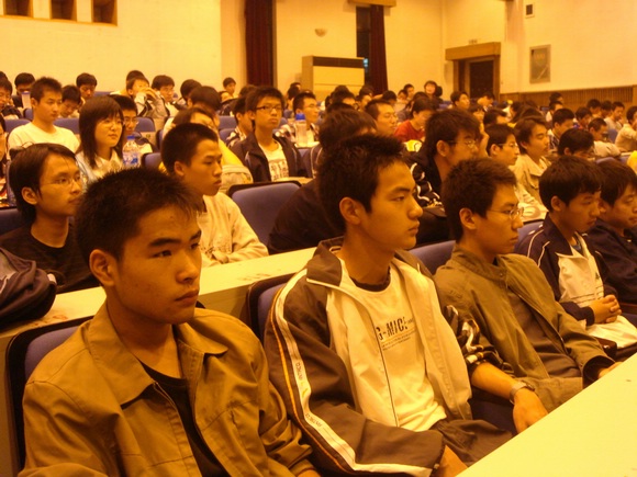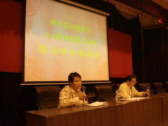 2006年10月13日(周五)晚6:30,理學院黨委書記何明老師在七號樓報告廳給全院2006級新生講授了第一次黨課。
