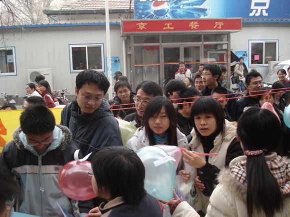 活動當天,工作人員將貼有問題的氣球懸掛起來,參加活動的同學摘下要回答的問題的氣球。這種形式吸引來了許多同學,他們紛紛涌到氣球邊,一邊看問題一邊閱讀宣傳板上的歷史資料。