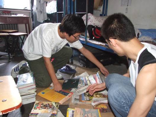 良鄉校區的學生黨員在收集宿舍樓內的廢品