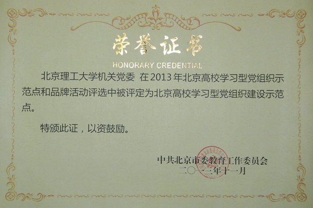北理工在2013年北京高校學習型黨組織建設示范點和品牌活動評選中勇創佳績