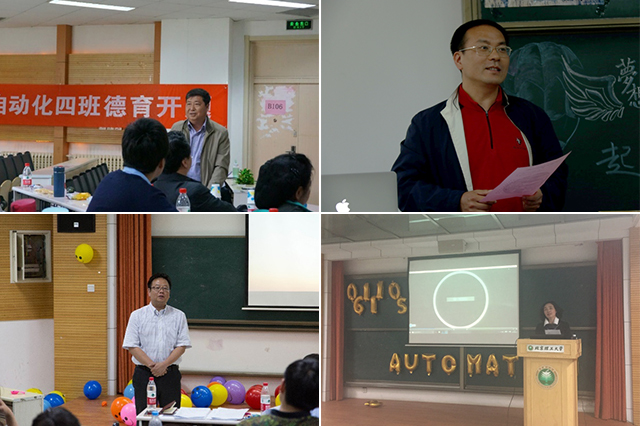 自動(dòng)化學(xué)院黨委書(shū)記金軍、院長(zhǎng)王軍政分別參加了2015級(jí)自動(dòng)化專業(yè)06111503班主題為“夢(mèng)與路”的德育開(kāi)題報(bào)告會(huì)、06111504班主題為“啟航·夢(mèng)想·青春”的德育開(kāi)題報(bào)告會(huì)。同學(xué)們逐次上臺(tái)闡述了自己對(duì)大學(xué)生活的體驗(yàn)與感悟,在總結(jié)過(guò)去一學(xué)期學(xué)習(xí)生活的同時(shí),認(rèn)真分析了自身的優(yōu)缺點(diǎn),提出了適合自身的目標(biāo)和計(jì)劃。金軍書(shū)記肯定了同學(xué)們?cè)谌雽W(xué)半年以來(lái)的成長(zhǎng)與進(jìn)步,他鼓勵(lì)同學(xué)們多思考,多動(dòng)腦,培養(yǎng)獨(dú)立思考能力,珍惜來(lái)之不易的大學(xué)學(xué)習(xí)機(jī)會(huì),也希望同學(xué)內(nèi)部能夠互相幫助,并對(duì)大家四年的大學(xué)生活給予真誠(chéng)的祝福。王軍政院長(zhǎng)向同學(xué)們強(qiáng)調(diào)了德育開(kāi)題的意義:德育開(kāi)題使同學(xué)們對(duì)大學(xué)生活有一個(gè)較好的規(guī)劃和目標(biāo),通過(guò)目標(biāo)不斷激勵(lì)自己更好的成長(zhǎng)、約束自己不偏離自己的人生目標(biāo),并且在今后的大學(xué)學(xué)習(xí)生活中,不斷的調(diào)整和完善自己的目標(biāo)與規(guī)劃,結(jié)合后續(xù)開(kāi)展的德育中期檢查與德育答辯,組成“閉環(huán)”系統(tǒng),使自己達(dá)到預(yù)期的“控制目標(biāo)”。科學(xué)技術(shù)研究院常務(wù)副院長(zhǎng)王魯參加了06111501班“仰望星空,腳踏實(shí)地”德育開(kāi)題報(bào)告。王魯院長(zhǎng)在開(kāi)題報(bào)告結(jié)束后與同學(xué)們的交流中指出大學(xué)生應(yīng)該樹(shù)立起責(zé)任意識(shí),不辜負(fù)父母和社會(huì)的期望,他告誡同學(xué)們要重視高等數(shù)學(xué)、線性代數(shù)、大學(xué)物理等基礎(chǔ)課程,同時(shí)也要重視動(dòng)手實(shí)踐,在學(xué)習(xí)和實(shí)踐過(guò)程中培養(yǎng)的學(xué)習(xí)能力和分析、解決問(wèn)題的能力是大學(xué)學(xué)習(xí)的重要目標(biāo)。