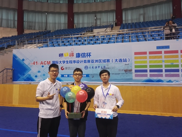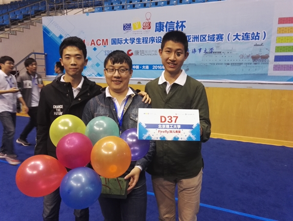 2016年10月16日,第41屆ACM國際大學(xué)生程序設(shè)計(jì)競賽亞洲區(qū)域賽(簡稱ICPC/ACM)在遼寧大連拉開序幕。北京理工大學(xué)軟件學(xué)院派出兩支由2014級和2015級本科生組成的隊(duì)伍參加比賽。其中,由本科2014級姜天洋、蔡曉帆、顏蘇卿組成的“正在登錄”隊(duì)以及由本科2014級張帥,2015級鄭以慷、尹昊組成的“發(fā)兒弗萊”隊(duì)各斬獲一枚銀牌。